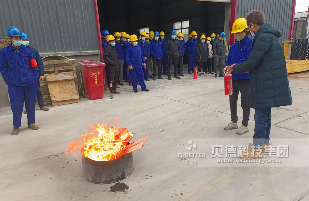 時值冬季,干燥寒冷,工廠企業用火、用電、用氣普遍增多,空氣中的濕度下降,物品含水量降低,遇火極易燃燒,火災風險大幅增加。貝德科技集團時刻繃緊“防火”這根弦,邀請了衢州鑫安安全技術咨詢有限公司技術人員對廠區員工進行培訓,并開展了消防安全演練。