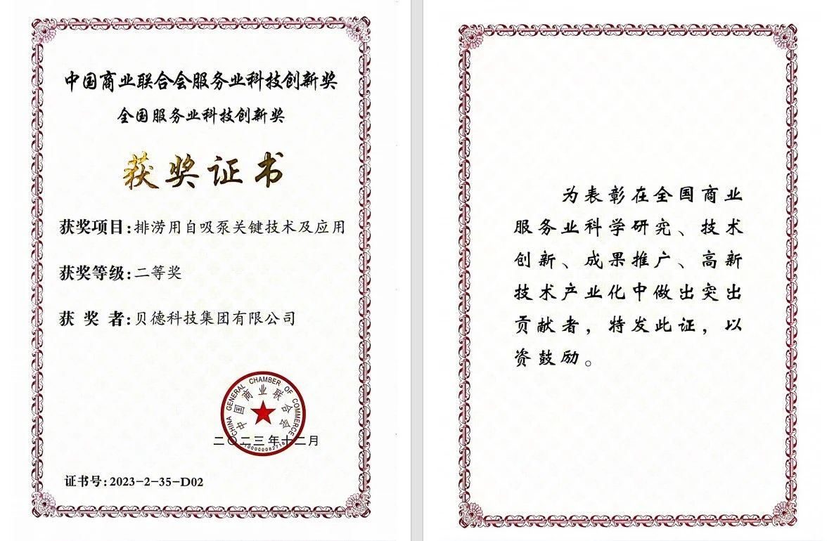 7月21日,中國(guó)商業(yè)聯(lián)合會(huì)主辦的2024年全國(guó)商業(yè)科技質(zhì)量大會(huì)在北京召開。本次大會(huì)主題是“聚焦新質(zhì)生產(chǎn)力 賦能行業(yè)高質(zhì)量發(fā)展”。貝德科技集團(tuán)總經(jīng)理羅衛(wèi)華研發(fā)的“排澇用自吸泵關(guān)鍵技術(shù)及應(yīng)用”榮膺中國(guó)商業(yè)聯(lián)合會(huì)服務(wù)業(yè)科技創(chuàng)新獎(jiǎng)二等獎(jiǎng)。