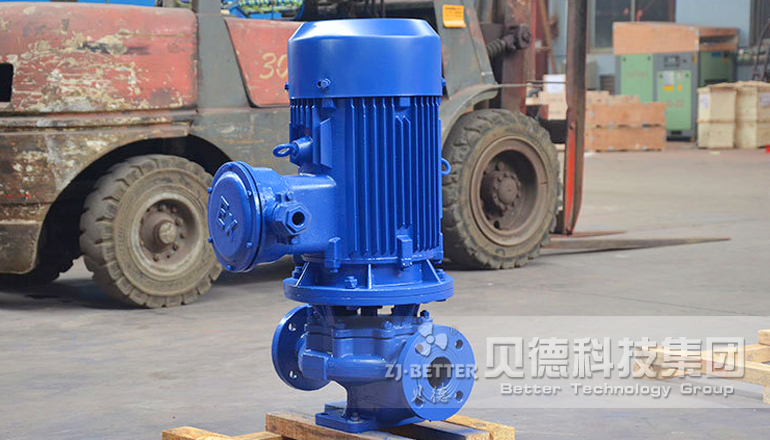 ①泵為立式結構,進出口口徑相同,且位于同一中心線上,可象閥門一樣安裝在管路之中,外形緊湊美觀,占地面積小,建筑投入低,如加上防護罩則可置于戶外使用。