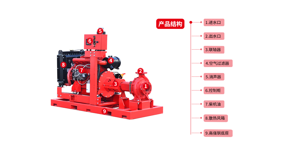 5.直連式:360kw以下柴油水泵機(jī)組采用國(guó)內(nèi)*的柴油機(jī)與水泵通過(guò)彈性聯(lián)軸節(jié)直接連接技術(shù),減少了故障點(diǎn),并使機(jī)組的起動(dòng)時(shí)間大大縮短,增加了機(jī)組的可靠性和應(yīng)急性能;