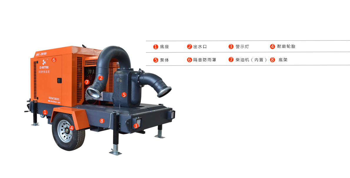移動自吸泵車采用一臺柴油發動機同軸拖動一臺水泵的一體化設備同時安裝有兩輪或者四輪的實心輪胎以及澳洲標準的牽引裝備,收到險情求助信息后就能快速響應,將泵車連接至汽車上,快速到達受災現場開始排水作業,還能有效解決搶險救災活動中經常遇到的進入困難、作業面狹窄、多種作業并行等多種難題。