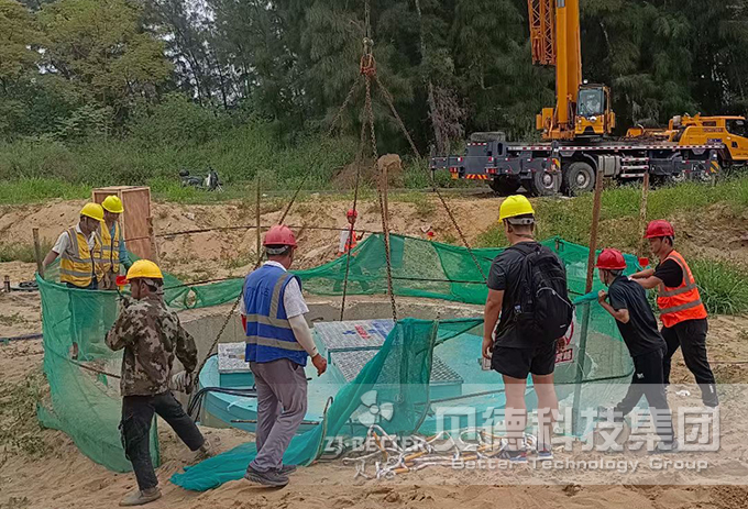 廣東吳川市市政污水項目的污水處理設備項目組經研究決定采用一體化預制泵站,項目負責人通過網絡找到我們貝德科技集團有限公司,了解了我公司的具體信息與工程案例,并與我司技術人員進行電話溝通。經過幾家泵站公司的對比,最后決定采用我司的一體化預制泵站,定制了一套規格為3800x6400mm的一體化預制泵站。